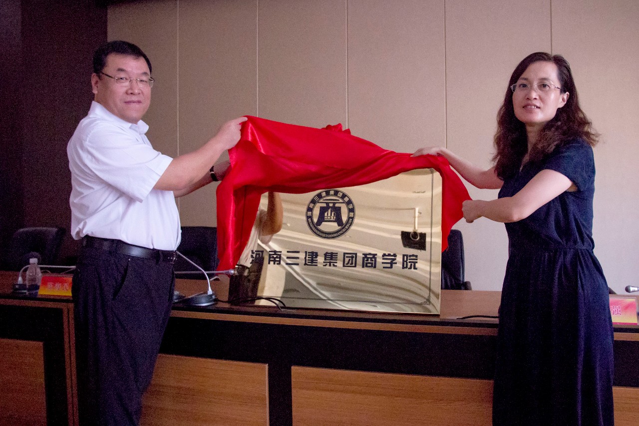 集團(tuán)公司董事長(zhǎng)、河南三建集團(tuán)商學(xué)院黨委書記張超鄭重宣布——河南三建集團(tuán)商學(xué)院成立,并與洛陽理工學(xué)院副校長(zhǎng)丁梧秀教授共同為河南三建集團(tuán)商學(xué)院揭牌。